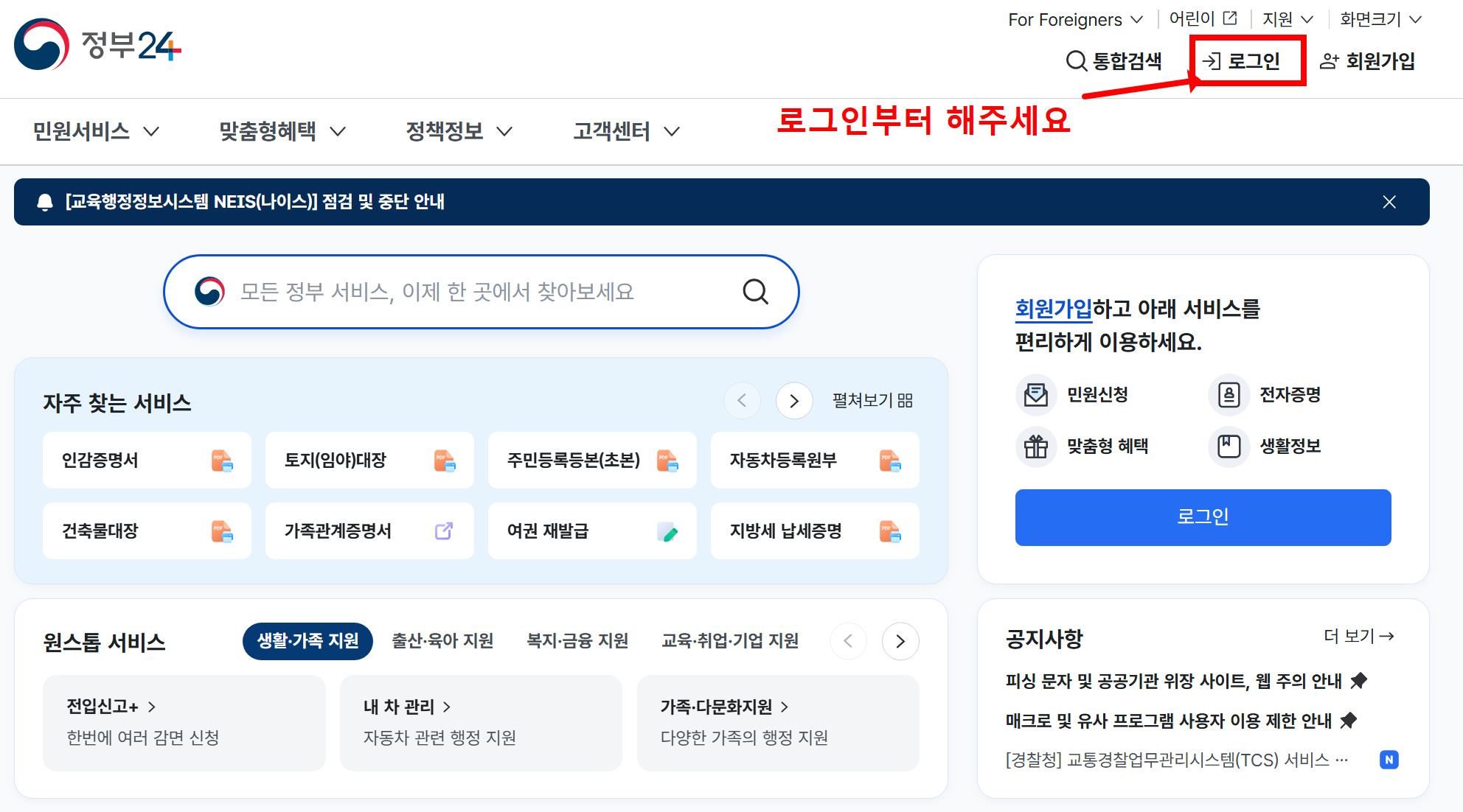 - 로그인: 공동·금융인증서 또는 네이버·카카오 간편인증 가능