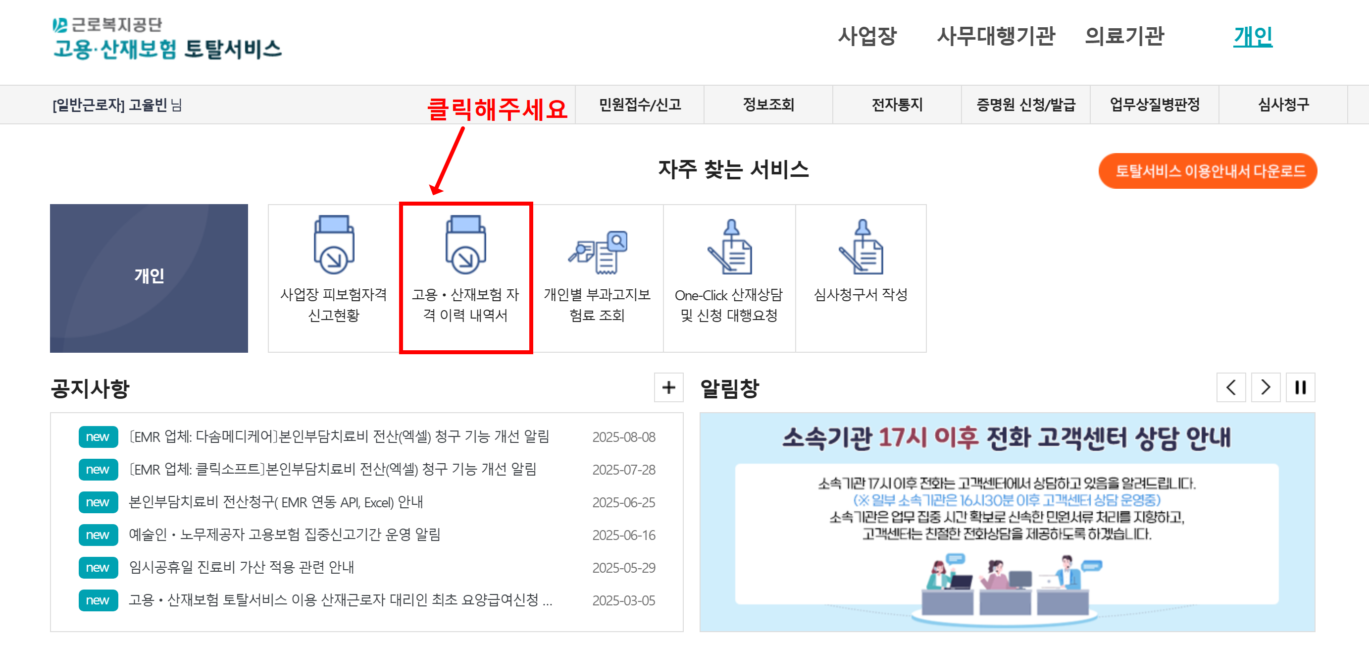 (1) 근로복지공단 고용·산재보험 토탈서비스